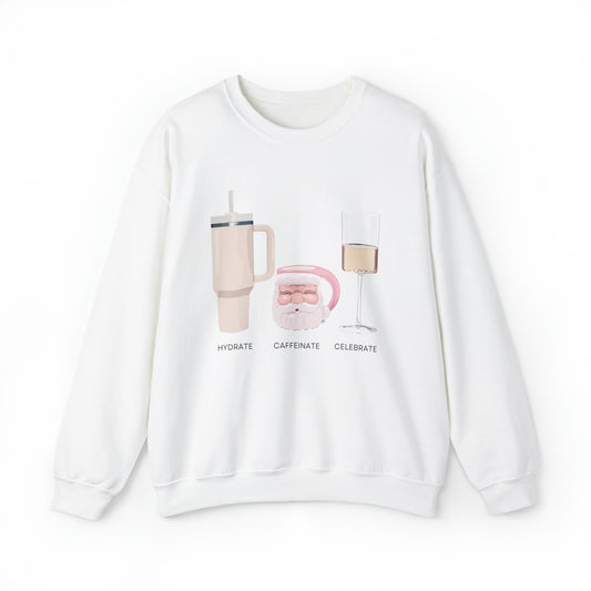 Festive Hydrate Caffeinate Celebrate Crewneck - Water Coffee Rose